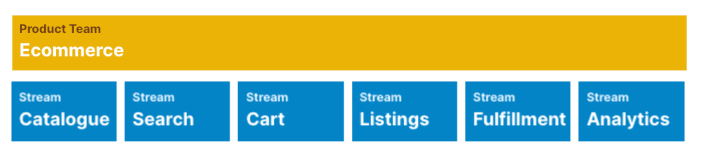 An example of an e-commerce product separated into Catalogue, Search, Cart, Listings, Fulfillment and Analytics.